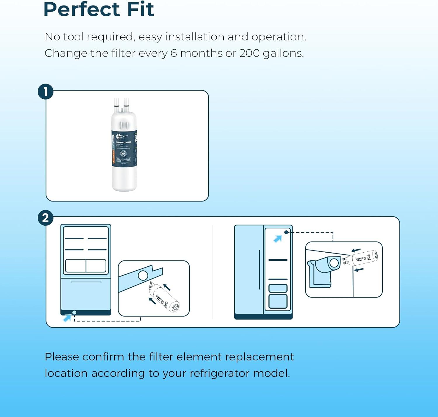 LONG LASTING USE: Crystala Filters Replacement Water Filter can use for 6 months or 200 gallons.